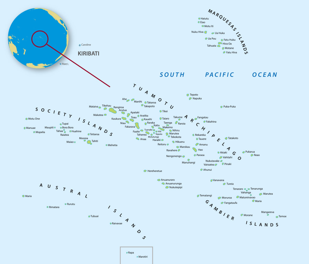 Ein Blick auf den Globus reicht und es ist klar, dass die magische Inselwelt von Französisch-Polynesien extrem weit entfernt liegt von allen großen Zentren der Zivilisation, irgendwo ganz unten im endlosen Blau der Südsee. Tahiti, die Hauptinsel, und das ganze französische Überseeterritorium mit insgesamt 283.000 Einwohnern auf 118 Inseln und Atollen lebt von Besuchern. Aber sie sind auch Gefangene dieser Abgelegenheit – nach Los Angeles sind es rund acht Flugstunden; die nächste Großstadt ist Auckland in Neuseeland, fünf Flugstunden entfernt. Kein Wunder, dass die Inseln im Jahr nur so viele Touristen empfangen wie das zu den USA gehörende Hawaii weiter nördlich in einer einzigen Woche.