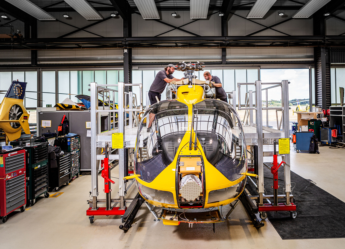 Die gelben Hubschrauber des ADAC kennt in Deutschland fast jeder. Im Hintergrund sorgen die Spezialist:innen des ADAC Heliservice für Ausstattung und Instandhaltung der besonderen Fluggeräte.