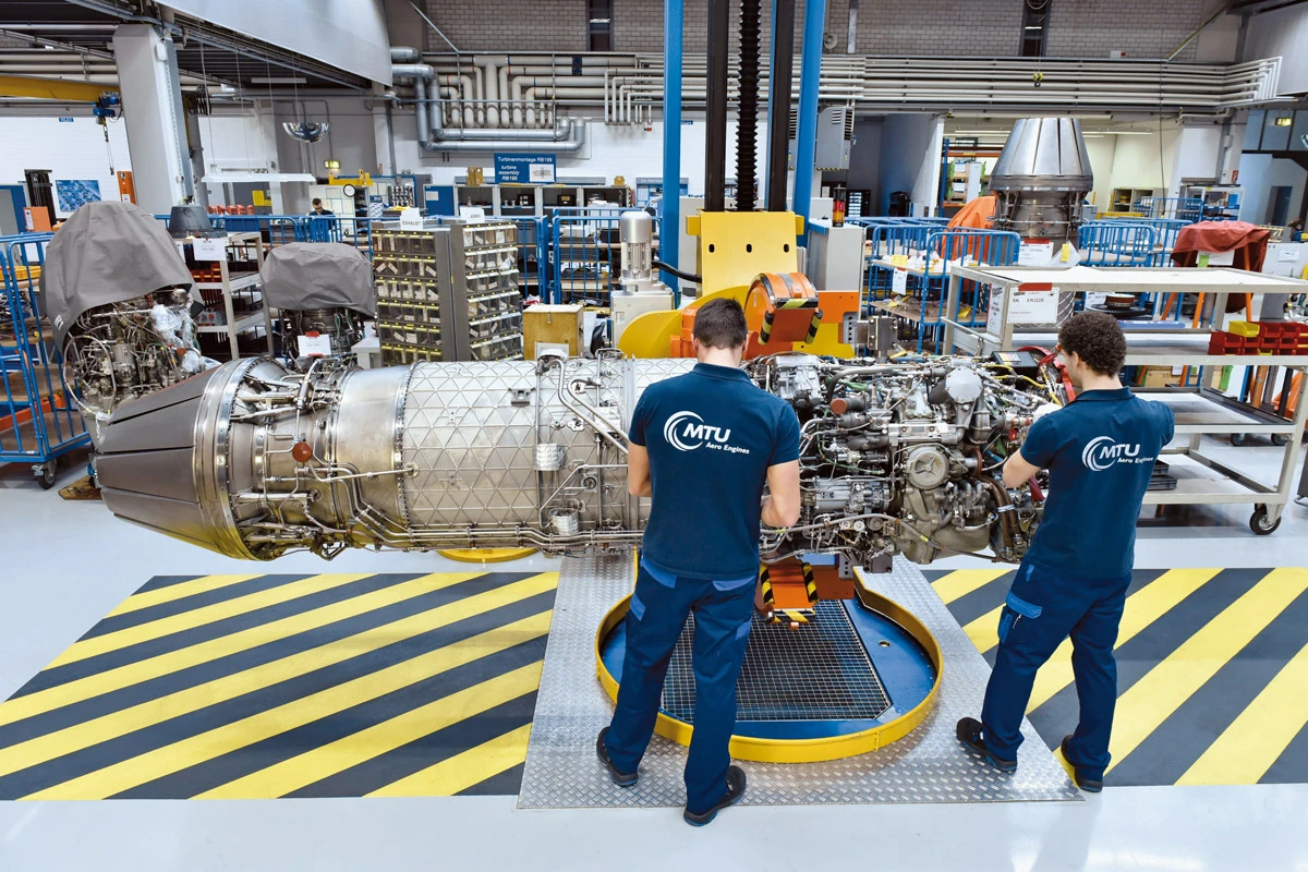 Die Instandsetzung erfolgt seither unter der Führung der Industrie, wobei immer Soldat:innen in die verschiedenen Arbeitsbereiche und Schlüsselstellen bei der MTU integriert sind. Auf diese Weise entsteht ein direkter Draht zu den Einsatzverbänden sowie ein Austausch über die Prozesse. „So konnten wir einen optimalen Instandsetzungsprozess aufsetzen, der die Erfahrungen von beiden Seiten berücksichtigt“, erläutert Stefan Burger, Leiter der MTU-Auftragsteuerung Instandsetzung EJ200 / RB199. Das Modell war so erfolgreich, dass später weitere Programme, etwa der Hubschrauberantrieb MTR390, folgten.