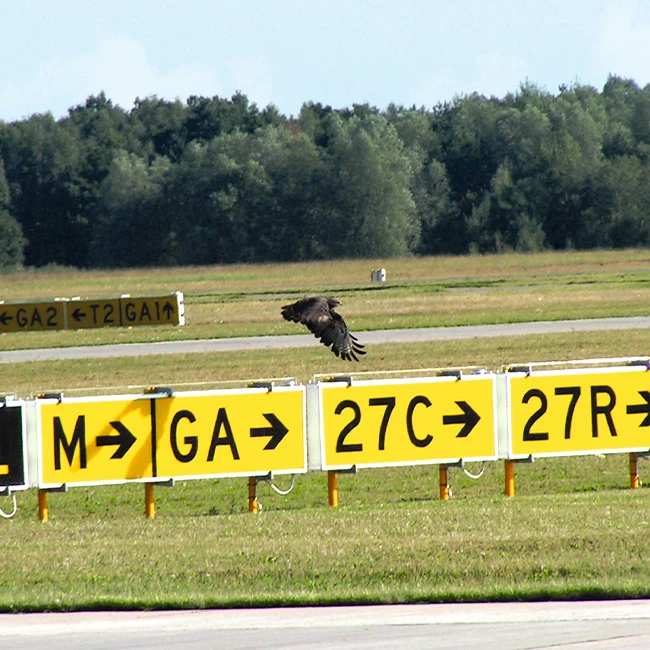 Natürliche Feinde schützen vor Vogelschlag: Um Flughäfen für Vögel unattraktiv zu machen, engagieren die Betreiber oftmals Falkner. Diese bringen speziell ausgebildete Greifvögel mit, die auf dem Gelände jagen.