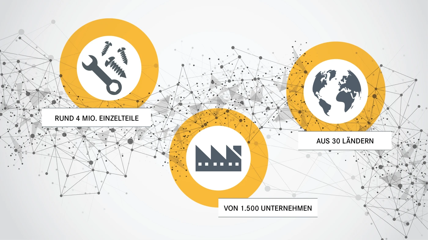Jede A380 besteht aus rund vier Millionen Einzelteilen, die von 1.500 Unternehmen in 30 Ländern hergestellt werden.