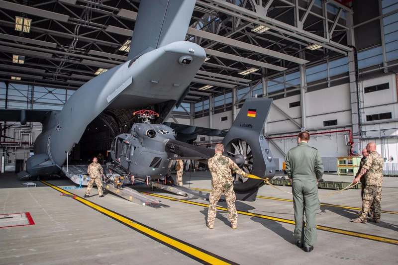 Ein H145M LUH SOF wird in eine A400M verladen – ein Beispiel für die hohe Flexibilität und Transportfähigkeit der Luftwaffe bei komplexen Evakuierungseinsätzen.