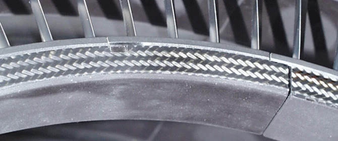 Faserverstärkte Kunststoffe setzen sich aus zwei völlig unterschiedlichen Komponenten zusammen: Wie Textilien gewebte, feste Fasern, die in eine Kunststoffmatrix eingebettet sind. Am Beispiel eines Innenrings lässt sich diese Struktur an der Oberfläche gut erkennen.