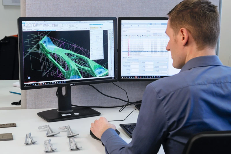 Es folgt das Ausrichten des Bauteils in der Maschine und die Bereitstellung des passenden, vorgesehenen Werkzeugs für die Bearbeitung. Das Werkzeug bearbeitet das Werkstück in den unterschiedlichen vorgegebenen Schritten und schreibt die dazu passenden Prozessdaten. Ist das jeweilige Werkstück fertig, folgt das nächste. Die Abarbeitungsreihenfolge wird dabei über Prioritäten durch die Werkstatt festgelegt, die sich nach den Lieferbedingungen richten.