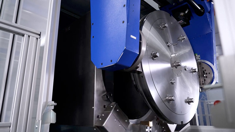 Das Besondere an diesem System: Der gesamte Ablauf ist so optimiert, dass die Maschine komplett ohne Unterbrechung arbeitet. Werkzeuge und Werkstücke werden getrennt voneinander geführt – während ein Bauteil im Bearbeitungsraum entspannt wird, bereitet die Rüstzelle bereits das nächste für den Drehvorgang vor.