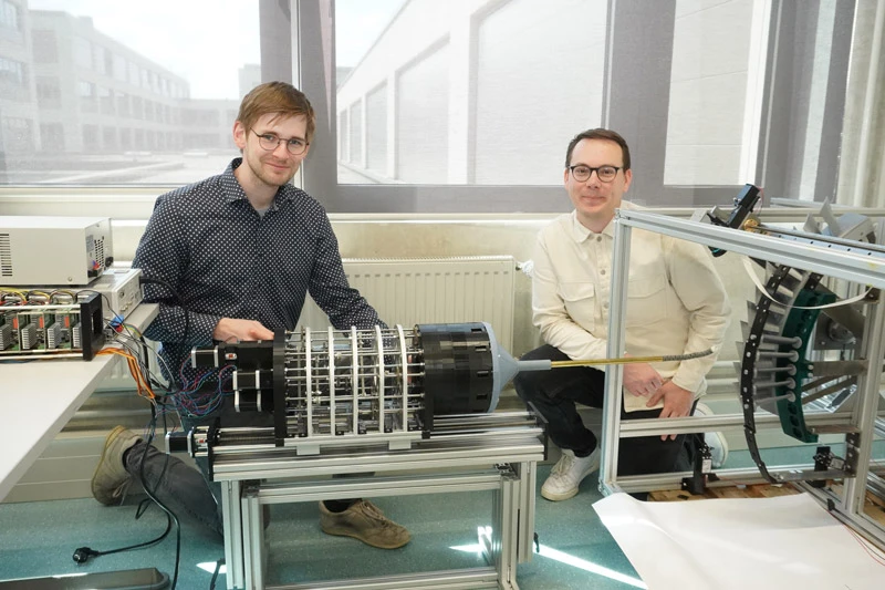 Spezialisten für Robotik: Die Wissenschaftler Martin Bensch (links) und Tim-David Job vom Institut für Mechatronische Systeme der Leibniz Universität Hannover entwickeln in Kooperation mit der MTU das roboterunterstützte Boroskop.